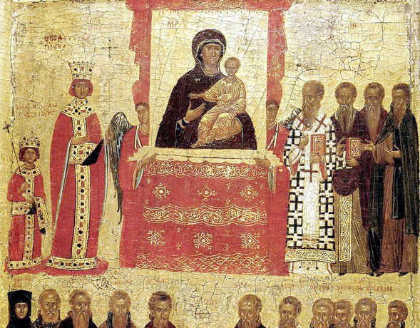 Во денот на Торжеството на Православието го празнуваме исполнувањето на епохата на седумте Вселенски собори. На седмиот Вселенски собор бил возгласен догматот за иконите којшто ни говори дека Бог, станувајќи човек, станал изобразлив, со Своето воплотување недостижниот Господ земал човечки лик, та ликот Божји може да биде запишан со линии и бои, не како портрет, туку како внатрешен, таинствен образ Божји, препознаван, живеен и познат во Црквата. Бог има лик, и ние тој лик можеме да го гледаме, и пред иконата која го изразува црковниот опит, црковното знаење за Бога ние дејствително можеме да ги преклониме колената со љубов, со благоговение, со нежност. Бог стана еден од нас, не престанувајќи да биде недостижен, велик Бог, самиот Живот, самата Светост, самото Недостижно.