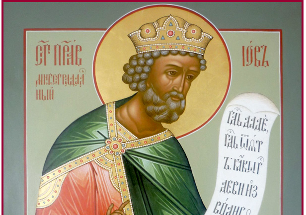 Јов беше потомок на Исав, внукот Авраамов и живееше во Арабија околу 2000 години пред Христа. Татко му е Зарет, а мајка – Восора, а неговото цело име беше Јовав. Беше човек чесен, богобојазлив и многу богат. Но, во седумдесет и деветтата година од неговиот живот Бог допушти тешки искушенија врз него преку сатаната, сè како што е подробно опишано во Книгата Јов. И во еден ден Јов го изгуби сиот свој имот, сите синови и ќерки свои. Потоа врз него падна тешка болест од којашто целото тело му се покри со рани од темето до стопалата и лежеше Јов на ѓубриштето надвор од градот и со парче ќерамида си го вадеше гнојот од раните. Но, не заропта на Господа, туку стрпливо докрај ги поднесе сите оние маки. Затоа Бог му го врати здравјето и му даде многу поголемо богатство од претходното и пак му се родија седум синови и три ќерки, колку што ги имаше порано. Поживеа уште двесте четириесет и осум години, постојано славејќи и фалејќи Го Бога. Јов се смета за пример на трпеливо поднесување на секое страдање коешто Бог ни го испраќа и за предобраз на страдалниот Господ Исус.