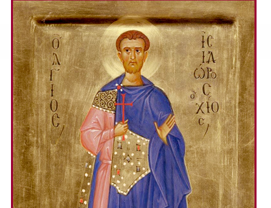 Во времето на царот Декиј, Исидор беше насила земен во војска од островот Хиос. Од малечок се држеше за Христовата вера и животот го минуваше во пост, во молитва и во добри дела. Во војската штом се прокажа како христијанин, војводата му побара отчет и го советуваше да се одрече од Христа и да им принесе жртва на идолите. Светителот одговори: „И телото да ми го убиеш, над мојата душа немаш власт. Јас Го имам вистинскиот и жив Бог Исус Христос, Којшто и сега живее во мене и по мојата смрт ќе биде со мене и јас сум во Него и ќе останам во Него и нема да престанам да го исповедам Неговото Свето име дури е духот во моето тело“. Војводата нареди и најпрво го биеја Исидор со воловски жили, а потоа му го отсекоа јазикот. Меѓутоа, и без јазик Исидор со Духот Божји говореше и го исповедаше Христовото име. Војводата пак, го постигна Божја казна и одеднаш онеме. Нем најпосле даде знак да го убијат Исидор со меч. А Исидор ѝ се зарадува на пресудата и фалејќи Го Бога најпосле излезе на губилиштето, каде што му ја отсекоа главата, во 251 година. Неговиот другар Амониј го погреба неговото тело, а за таа своја постапка и самиот пострада и прими венец на мачеништво.