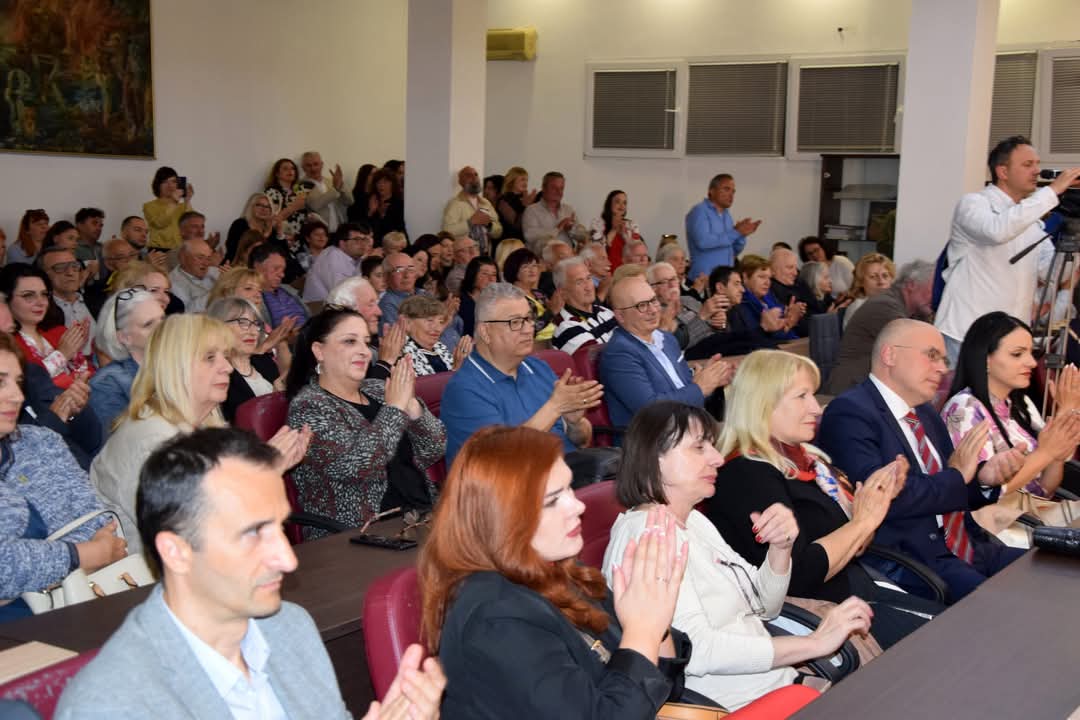 – Големиот уметник кој се вбројува во Светската реткост, творецот на неодминливите грандиозни уметнички дела изложени во најпознати светски музеи за кои се пишуваше во најексклузивни печатени трудови е причината што вечерва се собравме тука за заедно да одбележиме 55 години од неговото творештво . На овој Јубилеј со задоволство ќе уживаме и во богатата Монографија испечатена на околу 500 страни со речиси 300 негови репродукции. Станува збор за труд што со радост беше поддржан од Општина Охрид.