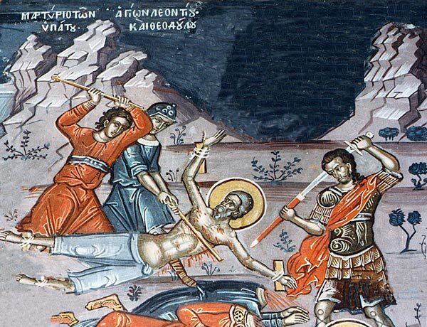 Леонтиј беше римски војвода во финикискиот град Триполис, во времето на царот Веспазијан. Родум од Елада, „висок, снажен, крепок и храбар во битките.“ Царскиот намесник Адријан испрати еден одред војска за да го фати Леонтиј, зашто Адријан им беше јаросен противник и гонител на христијаните. Старешината на тој одред, Ипатиј, по пат се раболе од лута треска, па одредот мораше да го забави својот од. Една ноќ му се јави ангел Божји на Ипатиј, велејќи: „Ако сакаш да бидеш здрав, извикајте трипати кон небесата, ти и сите твои војници: „Боже Леонтиев, помогни ми!“ Ова свое видение Ипатиј им го раскажа на своите другари и тие сите едногласно извикаа како што ги посоветува ангелот. Ипатиј одеднаш оздраве. Ова чудо ги восхити сите, а особено еден од нив по име Теодул. Тогаш Ипатиј и Теодул отидоа напред, да го најдат војводата Леонтиј. А Леонтиј ги прими убаво и ги нагости. Кога им ја изложи својата вера во Христа, нивните срца се разгореа со љубов кон Него, и во тој час светол облак се спушти над Ипатиј и Теодул и од облакот падна на нив роса. Со ова Самиот Дух Божји ги крштеваше новообратените души, а свети Леонтиј во оној миг ги изговори овие зборови: „Во името на Пресвета Троица, Отецот и Синот и Светиот Дух“. Кога дозна Адријан дека и Ипатиј и Теодул станале христијани, нареди да ги бијат безмилосно, а потоа главите да им ги отсечат со секира. Такво беше кончанието на тие две духовни чеда на свети Леонтиј. Тогаш Адријан наложи лути измачувања за Леонтиј, но тој остана непоколеблив во својата Света вера. Телото цело му го покрија со рани, но светителот усрдно Му се молеше на Бога да не го остава. Сред најлутите маки му се јави ангел Господов и го охрабри и го утеши. Најпосле го легнаа маченикот на земја и го тепаа додека не Му го предаде својот дух на Бога. Страдањето на свети Леонтиј го виде со свои очи еден кир Нотариј, којшто сето тоа го запиша на оловни плочи, а плочите ги положи во гробот на маченикот. Свети Леонтиј пострада чесно во 73 година.