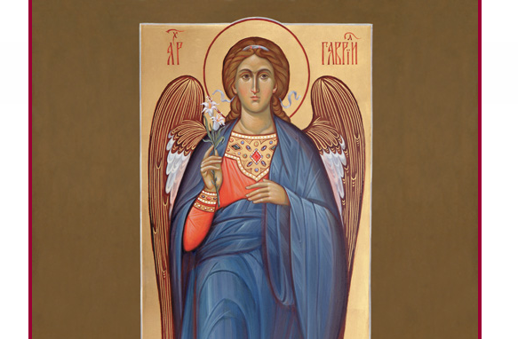 Овој голем Божји Архангел се празнува на 26 март. На денешен ден пак, се слават и чествуваат неговите чуда и јавувања низ целата историја на човечкото спасение. Се смета дека оваа слава е востановена најпрво на Света Гора во 9 век, за време на царевите Василиј и Константин Порфирородните и на патријархот Никола Хрисоверг, а по повод јавувањето на овој Архангел во една ќелија близу до Кареја, каде што со прст на камен ја испиша песната кон Пресвета Богородица „Достојно ест“. Заради овој настан таа ќелија и денес се нарекува ќелијата „Достојно ест“. Во оваа прилика се приспомнуваат и останатите јавувања на Архангелот Гавриил: кога му се јави на Мојсеја кој во свое време го чуваше стадото Јоторово, а нему Архангелот како на Божји избраник му соопшти како е создаден светот, кое Мојсеј подоцна и го запиша во Книгата Битие; кога му се јави на пророкот Даниил и му ја објави тајната за идните царства и за доаѓањето на Спасителот; јавувањето на света Ана кога ѝ благовестеше со ветувањето дека ќе ја роди преблагословената и Пречиста Дева Марија; многукратното јавување на Пресветата Дева додека Таа пребиваше во храмот ерусалимски; кога му се јави на првосвештеникот Захарија и го извести за раѓањето на свети Јован Претеча и за казната на немост што ќе го постигне свети Захарија затоа што не им поверува на зборовите на Архангелот; кога повторно ѝ се јави на Пресветата Дева во Назарет и ѝ благовестеше за зачнувањето и раѓањето на Господ Исус Христос; јавувањето на праведниот Јосиф; јавувањето на пастирите кај Витлеем; Му се јави и на Самиот Господ во Гетсиманската градина, кога Господ како човек беше поткрепуван од овој Архангел пред страдањето; кога им се јави на жените Мироносици итн.