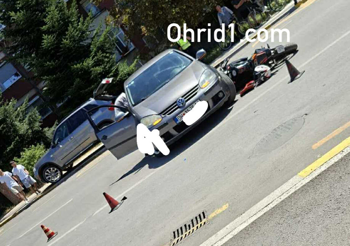 И денеска сообраќајна несреќа во Охрид. се судрија автомобил и мотор.