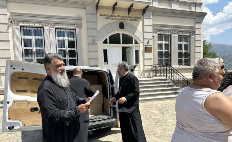 Со благослов на Архиепископот Охридски и Македонски и на Јустинијана Прва г.г. Стефан и митрополитот Дебарско-Кичевски г.Георгиј, денес во дворот на храмот Света Богородица Перивлепта, во Охрид, во соработка со хуманитарната организација на Скопската Епархија при МПЦ-ОА, Свети Спас, беа поделени 29 пакети со храна и хигиенски средства на социјално загрозени семејства од Охрид.