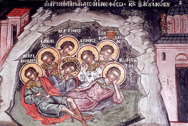 Во времето на царот Декиј имаше големо гонење на христијаните. Самиот цар дојде во Ефес и овде приреди гиздаво и бучно празнување на мртвите идоли, но и страшен колеж на христијаните. Седуммина момчиња, војници, се воздржаа од скверното жртвопринесување и усрдно Го молеа Бога Единствениот да го спаси христијанскиот род. Беа синови на најугледните ефески старешини, а имињата им беа: Максимилијан Јамвлих, Мартинијан, Јован, Дионисиј, Егзакустодијан и Антонин. Кога беа обвинети кај царот, се засолнија на ридот Охлон зад градот Ефес и овде се скрија во некоја пештера. Кога царот дозна за тоа, нареди да ја заѕидаат пештерата со момчињата внатре. А Бог, според Својата далекусежна Промисла, пушти еден чуден и долготраен сон на нив. Царските дворјани Теодор и Руфин, кои беа потајни христијани, дадоа таму да се вѕида и едно бакарно ковчеже со оловни плочи на коишто беа испишани имињата на овие момчиња и нивната маченичка смрт во време на царот Декиј. Оттогаш поминаа над двесте години. Во времето на царот Теодосиј Помладиот (408–450) настана голем спор околу воскресението на мртвите, затоа што имаше некои што се посомневаа во воскресението. Царот Теодосиј беше во голема тага заради овој спор меѓу верните и Му се молеше на Бога на некој начин да им ја објави вистината на луѓето. Во тоа време на бура во Црквата, овчарите на некој Адолиј кој го поседуваше ридот Охлон, почнаа да прават трла за овците и земаа камен по камен од онаа пештера. Тогаш младенците се разбудија од сон, млади и здрави какви што заспаа. И тоа чудо се разгласи на сите страни, та и самиот цар Теодосиј дојде со голема свита и со умиление разговараше со момчињата. После една недела тие повторно заспаа со сон смртен, за да го чекаат општото воскресение. Царот сакаше да ги положи нивните тела во златни ковчези, но тие му се јавија во сон и му рекоа да ги остави на земја како што се полегнати.