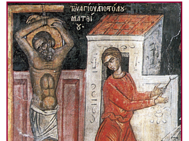 Родум од Витлеем, од племето Јудино. Му беше ученик на свети Симеон Богопримец во Јерусалим. Кога Господ излезе да проповеда за Царството Божјо, тогаш и Матиј им се придружи на оние што Го љубеа Господa, зашто и самиот од сесрце Го љубеше, со сладост ги слушаше Неговите зборови и ги гледаше Неговите дела. Во почетокот Матиј беше приброен кон седумдесетте Христови апостоли, но по воскресението на Господа, бидејќи местото на Јуда кој Го предаде беше испразнето, апостолите со ждрепка го избраа Матиј за еден од Дванаесеттемина големи апостоли (Дела 1, 23). Откако Го прими Светиот Дух на Педесетница, Матиј појде на проповед на Евангелието и проповедаше најнапред во Јудеја, потоа во Етиопија, каде претрпе големи маки за Христа. Се смета дека проповедал и во Македонија, каде сакале да го ослепат, но тој станал невидлив за своите мачители и така ја избегнал опасноста. Кога се најде вo затвор, му се јави Господ, го укрепи и го ослободи. Најпосле повторно се врати на работа во Јудеја. Овде беше обвинет и изведен на суд пред првосвештеникот Анан, пред кого бестрашно сведочеше за Христа. Анан, оној истиот којшто претходно го уби апостолот Јаков, го осуди и Матиј на смрт. Тогаш светиот апостол Матиј го изведоа и го убија со камења, а отпосле му ја отсекоа главата со секира – ова беше римски начин на погубување на осуденици, а Евреите го применија врз мртов човек за да претстават пред Римјаните дека убиениот бил и противник римски. Така заврши овој голем Христов апостол и се всели во вечноста на својот Господ.