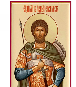 Беше офицер-трибун во римската војска во времето на царот Максимијан. Роден е во Сирија и таму беше на служба. Кога Персијците го загрозија со војска римското царување, на Андреј му беше доверена војска во борба против непријателите. Во таа прилика, го произведоа за војвода, односно стратилат. Бидејќи беше потаен христијанин, иако уште некрстен, Андреј се понадева во живиот Бог, па од мнозинството војници ги избра само најдобрите и со нив појде во битка. Пред битката им рече на своите војници дека ако сите Го повикуваат на помош единствениот вистински Бог Господ Исус Христос, нивните непријатели како прав ќе се распрснат пред нив. И навистина, сите војници вдахновени од Андреј и од неговата вера Го повикаа на помош Христа и извршија јуриш. Персиската војска беше наполно сотрена. Кога победоносниот Андреј се врати во Антиохија, некои завидливци го обвинија дека е христијанин и царскиот намесник го повика на суд. Андреј отворено ја изјави својата непоколеблива вера во Христа. По тешки измачувања намесникот го фрли во затвор и му пиша на царот во Рим. Знаејќи го угледот што го имаше Андреј кај народот и кај војската, царот му нареди на намесникот да го пушти на слобода, но да демне друга прилика и друга причина за да го убие. Во откровение од Бога Андреј дозна за таа царска наредба, па ги зеде со себе сите свои верни војници, две илјади петстотини деведесет и тројца на број, отиде со нив во Тарс Киликиски и таму се крстија сите од раката на епископот Петар. И овде прогонуван од царските власти, со својата дружина Андреј се повлече далеку во ерменската планина Таврос. Таму, во некој теснец, додека сите беа на молитва, пристигна римска војска и ги закла сите до еден. Никој од нив не сакаше да се брани, а сите беа желни за маченичка смрт за Христа. На тоа место каде се излеа потокот од маченичка крв, изби извор со лековита вода, којашто исцелуваше од секакви болести. Епископот Петар дојде потајно со свои луѓе и чесно ги погреба телата на мачениците на она место. Сите чесно пострадаа и стекнаа венци на бесмртна слава во царството на Господ Христос.