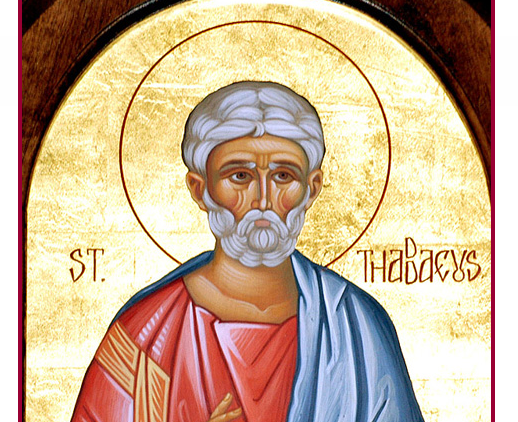 Еден од седумдесетте апостоли, а не оној Тадеј кој беше од Дванаесеттемината. Свети Тадеј прво го виде и го слушна свети Јован Крстител и прими крштевање од него, а потоа Го виде Господa Исусa и Го следеше Него. Господ го вброи помеѓу седумдесетте помали апостоли, кои ги испрати двајца по двајца пред лицето Свое (Лк. 10,1). Пo Своето славно Воскресение и Вознесение, Господ го испрати Тадеј во Едеса, која е родното место на Тадеј, според ветувањето што му го даде на кнезот Авгар кога му ја испрати крпата со Својот лик на неа (откако се избриша). Штом ја целиваше таа крпа Авгар се излечи од лепрата, но не сосема, туку малку лепра му остана на лицето. Кога свети Тадеј му се јави на Авгар, овој го прими со голема радост. Апостолот го поучи во верата и го крсти. Кога излегуваше од водата на Крштението, остатокот од лепрата на неговото лице спадна и тој стана сосем здрав. Кнезот Авгар Го прослави Бога и посака и неговиот народ да Го познае вистинскиот Бог и да Го прослави. И кнезот ги повика сите граѓани на Едеса пред апостолот Тадеј за да ја чујат проповедта за Христа. Откако ги чуја зборовите на апостолот и го видоа кнезот чудесно исцелен, луѓето ги отфрлија идолите и нечистото живеење и ја примија Христовата вера и се крстија. Кнезот Авгар изнесе многу злато и му го понуди на апостолот, но Тадеј му рече: „Кога своето го оставивме, како да го примаме туѓото?“ И тој го проповедаше Евангелието ширум Сирија и Феникија. Се упокои во Господa во градот Вирит Финикиски.