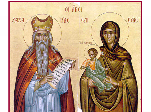 Родители на светиот Јован Претеча. Захарија беше син Варахиин, од родот на Авиј, кој ја држеше осмата чреда на богослужење во храмот јерусалимски. Жена му беше Елисавета, ќерка на Совија, сестрата на света Ана, мајката на Пресвета Богородица. Во времето на царот Ирод детеубиецот, еден ден кога Захарија служеше според својата чреда во јерусалимскиот храм, во олтарот му се јави Ангел Божји, од когошто Захарија се уплаши. А Ангелот му рече: „Не плаши се, Захарија“ (Лк. 1). И му објави Ангелот дека неговата жена Елисавета ќе роди син, според нивните молитви. А беа обајцата стари, и Захарија и Елисавета. Кога Захарија се посомнева во зборовите на небесниот известител, Ангелот му рече: „Јас сум Гавриил кој стојам пред Бога.“ И онеме Захарија од тој миг, и не проговори додека не му се роди синот и додека не напиша на табличка: „Јован му е името.“ Тогаш му се отвори устата и Го величаше Бога. Подоцна, кога се роди Господ Исус и кога Ирод почна да ги убива децата во Витлеем, Ирод испрати да го најдат и синот на Захарија и да го убијат. Бидејќи Ирод имаше чуено за сè што му се случи на Захарија и како се роди Јован. Кога ги виде војниците, Елисавета го зеде Јован на раце – тогаш имаше една и пол година – и побегна со него од дома, и бегаше по каменливи и пусти места. Гледајќи ги војниците како ја гонат, таа повика кон гората: „Горо Божја, прими ја мајката со дете!“ И се отвори карпата и ги скри во себе мајката и детето. Ирод, разјарен затоа што не го заклаа Јован, нареди да го заколат Захарија пред олтарот. Крвта на Захарија се истури врз мермерот и се стврдна како камен, та остана така како сведоштво за злосторството на Ирод. А таму каде што се скри Елисавета со Јован, се отвори пештера и потече вода и со Божја сила израсна плодородна палма. Четириесет дена по смртта на Захарија се упокои и блажената Елисавета. И остана младенецот Јован во пустината, хранет од Ангел и чуван од Божјата Промисла до оној ден кога требаше да се јави на Јордан.