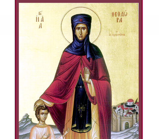Од Александрија, жена на млад маж. Наговорена од некоја бајачка, таа изврши прељуба со друг човек. И веднаш совеста почна луто да ја гризе. Си ја исече косата и се облече во машка облека, па стапи во машкиот манастир Октодекат под машкото име Теодор. Нејзиниот труд, пост, бдеење, понизноста и плачното покајание ги восхитуваа сите браќа. Наклеветена од некоја блудна девица дека е од неа обесчестена и забременила, Теодора не сакаше да се оправдува, сметајќи го тоа како казна Божја за својот поранешен грев. Избркана од манастирот, таа седум години помина пребивајќи по шуми и пустини, притоа негувајќи го и детето на онаа блудница. Ги победи сите ѓаволски искушенија: не сакаше да му се поклони на сатаната, не сакаше да прими јадење од рацете на еден војник, не сакаше да ги слуша советите на мажот ѝ да му се врати – затоа што сето тоа беше само ѓаволски привид и штом Теодора ќе се прекрстеше со крстот, сето тоа исчезнуваше како чад. По седум години, игуменот ја прими во манастирот, каде што проживеа уште две години, па се упокои во Господа. Дури тогаш дознаа монасите дека е жена, а на игуменот му се јави Ангел и сè му објасни. Нејзиниот маж тогаш дојде на погреб и до смртта остана во келијата на својата некогашна жена. Света Теодора имаше голема Божја благодат: скротуваше ѕверови, исцелуваше болести, изведе вода во сув бунар. Така ја прослави Бог вистинската покајничка којашто долготрпеливо се каеше девет години за само еден грев. Се упокои во 490. година.