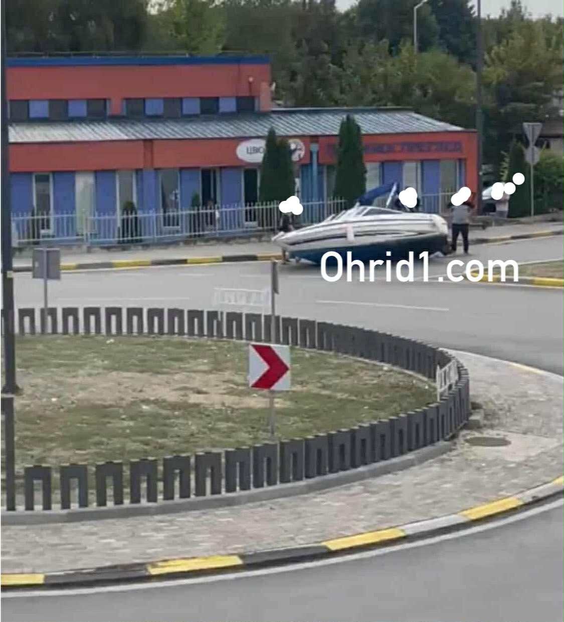 Пловило ( глисер ) при транспорт испаднало од приколката и стои на асфалтот. Во незгодата нема повредени лица.