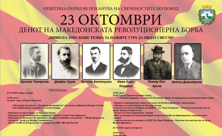 Почитувани сограѓани, Ве покануваме заедно да го одбележиме 23-ти Октомври, Денот Македонската револуционерна борба.