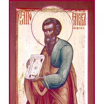 Син Алфеев и еден од Дванаесетте големи апостоли. Роден брат на евангелистот Матеј. Сведок на словото на вистината и на чудата на нашиот Господ и Спасител Исус Христос, сведок на Неговото страдање, Воскресение и Вознесение. По слегувањето на Светиот Дух на Педесетница, на апостолот Јаков му падна во дел да го проповеда Христовото Евангелие во Елефтеропол и околните места, потоа во Египет, каде што и пострада за својот Спасител. Со голема сила и на збор и на дело, свети Јаков ја разнесуваше благовеста за воплотениот Бог Слово, уривајќи го идолопоклонството, од луѓето изгонувајќи ги демоните, лечејќи секаква мака и болест со името на Господа Исуса Христа. Неговиот труд и неговата ревност беа крунисани со голем успех. Многумина незнабошци поверуваа во Господа Христа, се основаа и устроија цркви, беа поставени епископи и свештеници. Пострада во Египет, во градот Острацин, распнат на крст од незнабошците. Така овој голем и прекрасен апостол се пресели во Небесното Царство, за со Царот на славата да царува бесмртно.