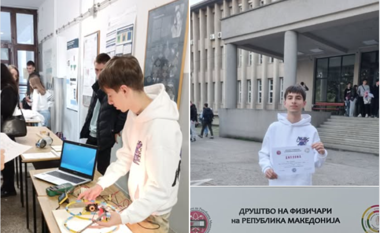 Ученикот Наум Смилевски од II-4 на 13.11.2025 г. учествуваше на 47. школа ,,Млади физичари” во организација на Друштвото на физичари на Република Македонија и освои прво место. Се претстави со модел со кој го објасни процесот за безжичен пренос на електрична енергија преку елктромагнетна индукција и електромагнетно поле.