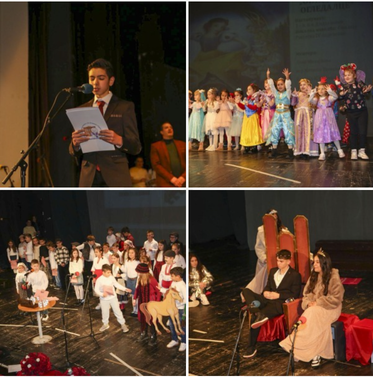 Во рамки на програмата беше изведена кореографија со детски маски, преку која најмладите ги претставија своите омилени јунаци од бајките. Потоа следуваше рецитал составен од мудри мисли и поговорки и драматизација на приказната за Силјан Штркот. Исто така, беа изведени и неколку ритмички точки, како и музички композиции на училишниот хор и оркестар.