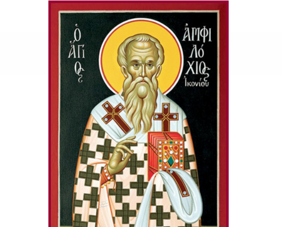 Сонародник и пријател на свети Василиј Велики и на другите големи светители од 4 век. Рано го остави светскиот метеж и се повлече во една пештера, каде што како отшелник проживеа во подвиг четириесет години. Тогаш се случи да се испразни епископската столица во Иконија и Амфилохиј на чудесен начин беше избран и посветен за епископ Икониски. Беше прекрасен пастир и голем бранител на чистата православна вера. Учествуваше на II Вселенски Собор во 381 година. Ревносно се бореше против злочестивиот Македониј и против аријанците и Евномиј. Лично го молеше царот Теодосиј Велики да ги протера аријанците од секој град во државата. Царот не му ја исполни желбата. По неколку дена повторно Амфилохиј му се јави на царот. Кога епископот беше воведен во одајата за прием, царот седеше на престолот, а од неговата десна страна беше неговиот син Аркадиј, когошто тој си го беше зел за соцар. Кога влезе Амфилохиј му се поклони на царот Теодосиј, а на Аркадиј, царскиот син, не се ни обѕрна, како и да го немаше таму. Царот Теодосиј многу се разгневи заради ова и нареди Амфилохиј веднаш да се избрка од дворецот. Тогаш светителот му рече на царот: „Гледаш ли, цару, како ти не го поднесуваш бесчестењето на твојот син; така и Бог Отецот не го трпи бесчестењето на Синот Свој, со ненавидност се одвраќа од оние коишто хулат на Него и се гневи на сите следбеници на онаа (Ариева) ерес“. Кога го слушна ова царот разбра зошто Амфилохиј не му оддаде почест на неговиот син и се восхити на неговата смелост и мудрост. Покрај многубројните дела и подвизи, свети Амфилохиј напиша и неколку книги за верата. Се упокои во 395 година во длабока старост и се пресели во бесмртниот живот.