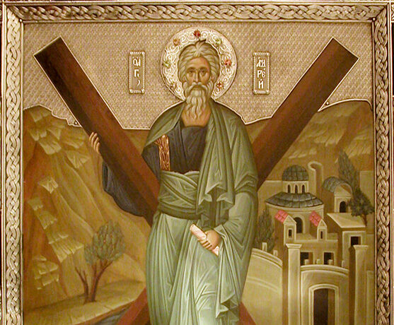 Син на Јона и брат на Петар, родум од Витсаида, рибар по занимање. Најпрво му беше ученик на свети Јован Крстител, но кога свети Јован покажа со прст на Господ Исус велејќи: „Еве го Јагнето Божјо!“ (Јован 1, 36), тогаш Андреј го остави својот прв учител и тргна по Исуса. Потоа го приведе кон Господа и својот брат Петар. По слегувањето на Светиот Дух, на овој прв апостол Христов му падна во дел да го проповеда Евангелието во Византија и Тракија, a потоа во земјите Дунавски, па во Русија и околу Црното Море и најпосле во Епир, Грција и Пелопонез, каде што и пострада. Во Византија постави прв епископ во лицето на свети Стахиј; во Киев забоде крст на една височина и прорече блескава христијанска иднина за рускиот народ; во Тракија, Епир, Грција и Пелопонез приведе во верата мноштво народ и им постави епископи и свештеници. Во градот Патра изврши многу чуда со името на Христа и придоби многумина за Господа, меѓу кои беа братот и жената на царскиот намесник Егеат. Разјарен заради ова, Егеат го подложи светиот Андреј на маки, а потоа го распна на крст. Додека беше жив на крстот, апостолот им кажуваше корисни поуки на христијаните што се беа собрале околу неговиот крст. Народот сакаше да го симне од крстот, но тој се спротивстави на тоа. Најпосле, апостолот почна да Му се моли на Бога и притоа некоја необична светлина го заблесна целиот. Тоа светло озарување траеше околу половина час, а кога исчезна, апостолот Му ја предаде својата душа на Господ. Така го заврши својот земен век првоповиканиот апостол, којшто прв од Дванаесетте големи апостоли Го позна Господа и тргна по Него. Пострада за својот Господ во 62 година. Неговите мошти беа пренесени во Цариград. Подоцна главата му ја пренесоа во Рим, а едната рака во Москва.