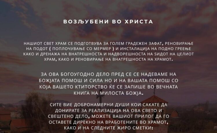 Од неодамна започнаа реконструктивни зафати во внатрешниот дел од црквата Св. Троица во Охрид. Според фотографиите објавени од оваа црква полека но сигурно се напредува во целиот тој зафат, па од таму напоменуваат дека секој кој е во можност може да оствари донација на средства преку жиро сметка или директно во црквата.