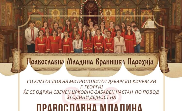 На ден 27 декември (сабота), со почеток во 16:00 часот, во Центар за култура „Браќа Миладиновци“ – Струга, ќе се одржи свечен црковно-забавен настан по повод 5 години дејност на Православна Младина – Вранишка парохија.