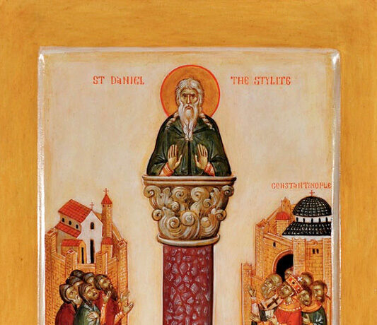 Роден е во селото Витара кај градот Самосат во Месопотамија, од родители христијани, Илија и Марта. Беше измолен од Бога од мајка му којашто беше бездетна и како син единец го посветија од малечок на служба на Бога. Во дванаесеттата година прими монашки чин, го посети светиот Симеон Столпник и го доби неговиот благослов. Желен за самотија, Даниил го напушти манастирот и се повлече во еден запустен идолски храм на брегот на Црното Море. Овде претрпе безброј напади од демоните, но сите ги победи со трпението, молитвата и знакот на крстот. Потоа се качи на столбот на којшто остана сè до својата смрт, поднесувајќи ги еднакво жегата и студот и нападите од луѓето и демоните. Околу неговиот столб се собраа голем број ученици и тој, со својот пример и поучувајќи, сите ги водеше кон живот во светост. Овој Свој слуга заради ползата на луѓето Бог го даруваше со голема блaгодат на чудотворство уште за време на животот. Беше голем прозорливец на идните настани. Под неговиот столб притекнуваше народ од сите страни, во потрага по помош и совет од Божјиот светител. Кај него доаѓаа цареви, патријарси и прости луѓе. Царот Лав Велики своите гости-државници од странство ги водеше под столбот на светиот Даниил и им го покажуваше светителот велејќи: „Ете го чудото во моето царство!“ Преподобен Даниил си го прорече денот на својата смрт, ги поучи своите ученици и се прости. Пред неговата смрт, учениците видоа над столбот Ангели, пророци, апостоли и маченици. Овој ангелски човек поживеа осумдесет години и се упокои во 489 година.