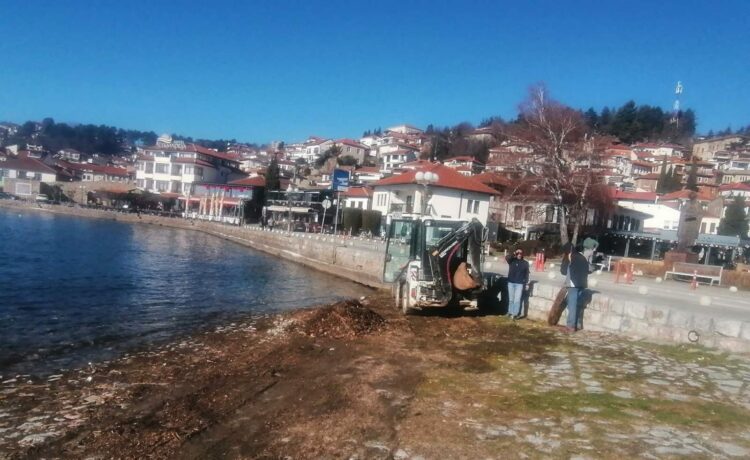 Во пресрет на еден од најголемите христијански празници Богојавление – Водици, денес екипите работеа на терен за целосно чистење на пристаништето. Спустот во езерските води, од каде што традиционално влегуваат капачите, е исчистен од наноси на камења, песок и отпад.
