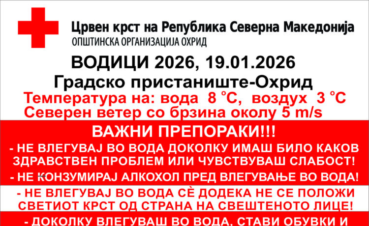 Црвен крст Охрид до сите оние кои ќе бидат дел од настанот за одбележување на празникот Богојавление-Водици на Градското пристаниште во Охрид упатува апел за почитување на следните препораки: