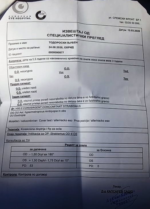 Апел за помош на малиот Љубен Тодороски од Охрид кој во текот на вчерашниот ден е извршена интервенција на очна клиника во Скопје , операција на страбизам со генерална анестезија.