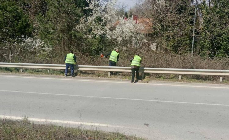 Тековно сезонско одржување на зелениот појас покрај магистралниот пат, потег Билјанини Извори – Свети Стефан
