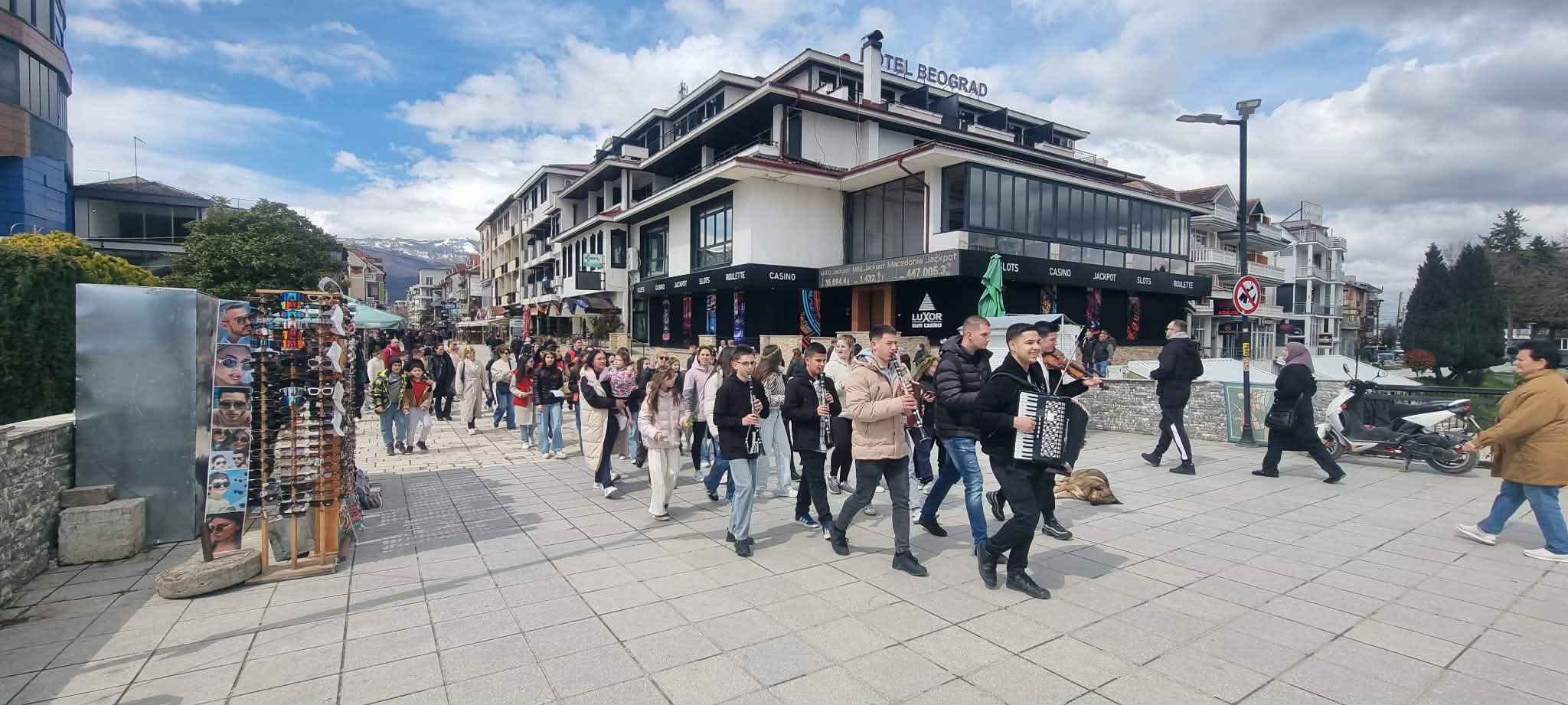 Поворката се одвиваше од едната па до другата страна на реката Црн Дрим ,низ мостото од струшката чаршија и повторно назад од каде што се тргна. Се свиреше и пееше песната „Кажи Лазаре“, како од учесниците на поворката така и од ученички кои беа облечени во народни носии, автентични од струшкиот крај.