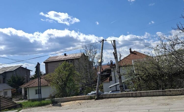 Бандерата на која се приклучени кабли од телекомуникациски опертори подолго време стои искосена и претставува опасност, алармираат жители од оваа улица кои живеат во непосредна близина.