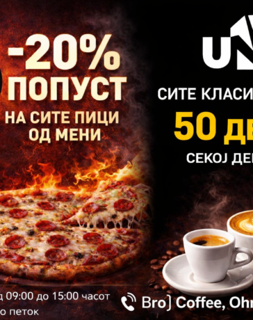 Акциски понуди во ресторанот УНО во Охрид Мол – попусти на пици и кафе по промотивни цени