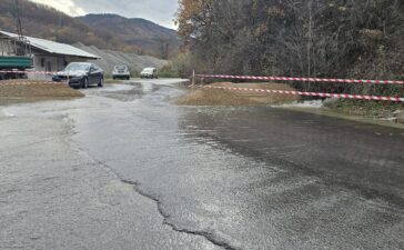 Внимавајте кај каменоломот има стеснување на патот со земјен насип (за насочување на водата) поради надојдена вода од обилните врнежи...