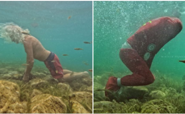 Човекот амфибија во многу сложени услови, врзан со лисици, ланци и катинари, потопен на дното на Охридското Езеро, кај плажата...