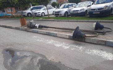 На ред дојдоа и канделабрите. Оваа канделабра вака срушена стои и со електричните жици надвор, стои уште од 25. Август....