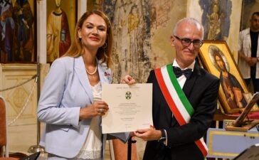 Претседателот на Република Италија, Серџо Матарела, ја одликува директорката на НУ „Охридско лето“, Наташа Поповиќ со Орден „Витез на Редот...