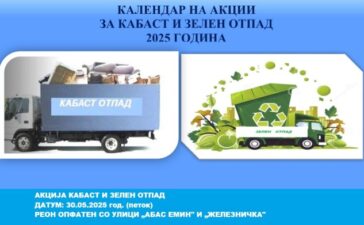 Ј.П.„Охридски Kомуналец” на ден 30.05.2025 год.(петок) ќе организира акција за подигнување кабаст отпад (стар мебел, душеци, телевизори, шпорети, теписони и...