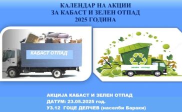 Акција кабаст и зелен отпад У.З.12 „Гоце Делчев” (населба Бараки)-23.05.2025 год.(петок)