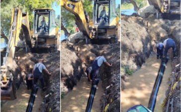 Екипи на ЈП Водовод Охрид, работеа на отстранување на големиот дефект на водоснабдителната мрежа во с.Пештани, на водоводна цевка со...